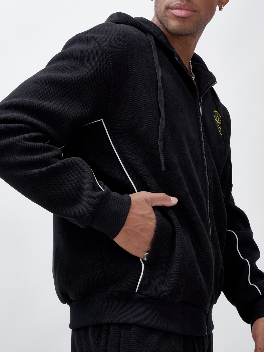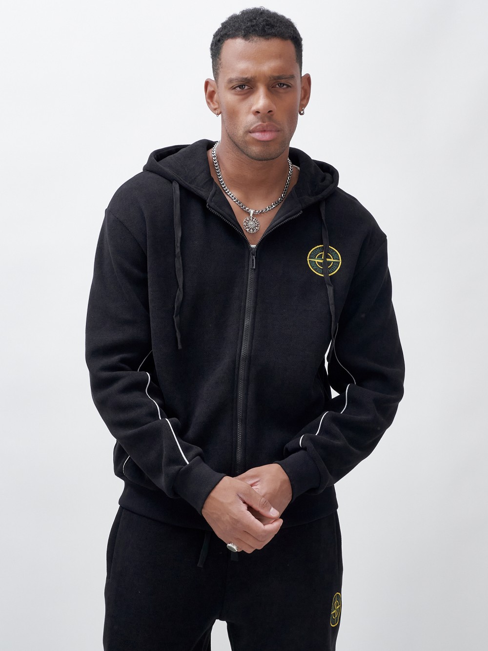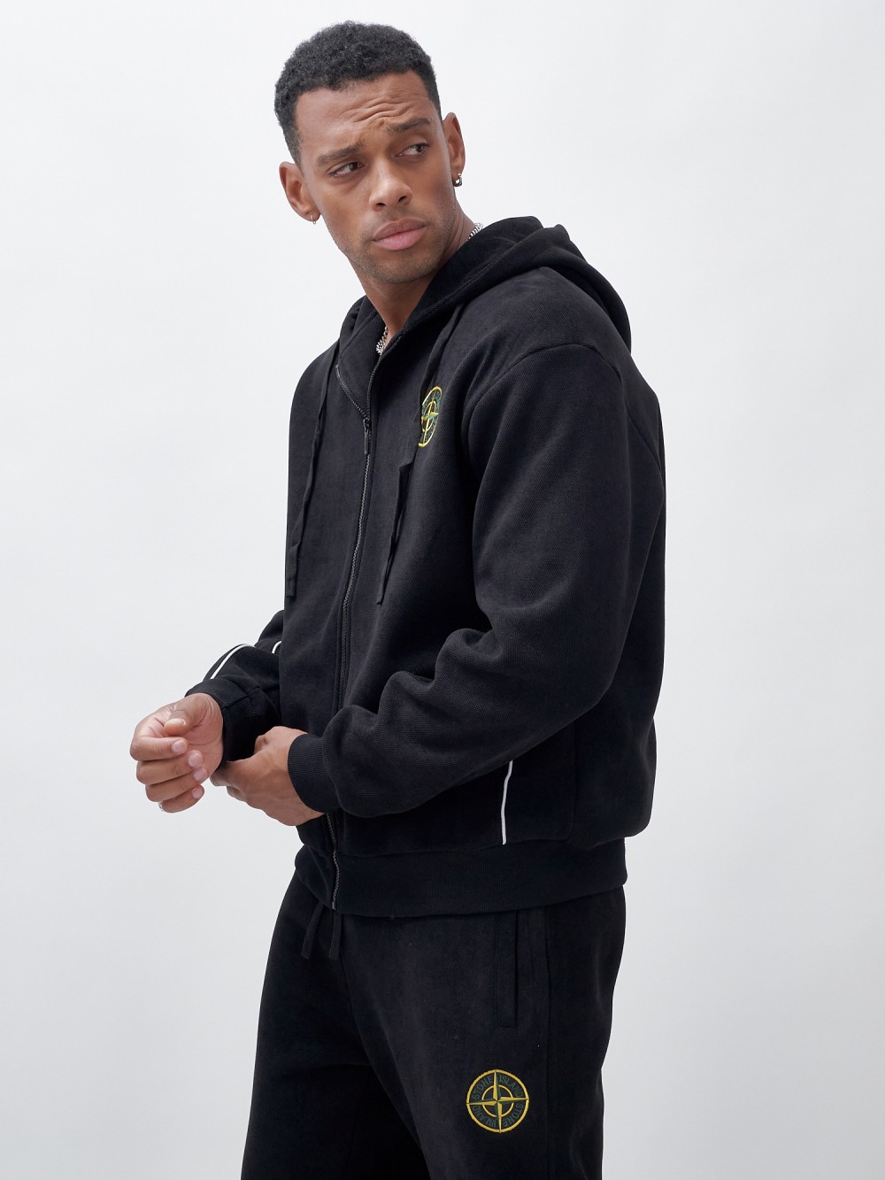 Олимпийка мужской демисезонный на флисе УЦЕНКА черного цвета 0891Ch