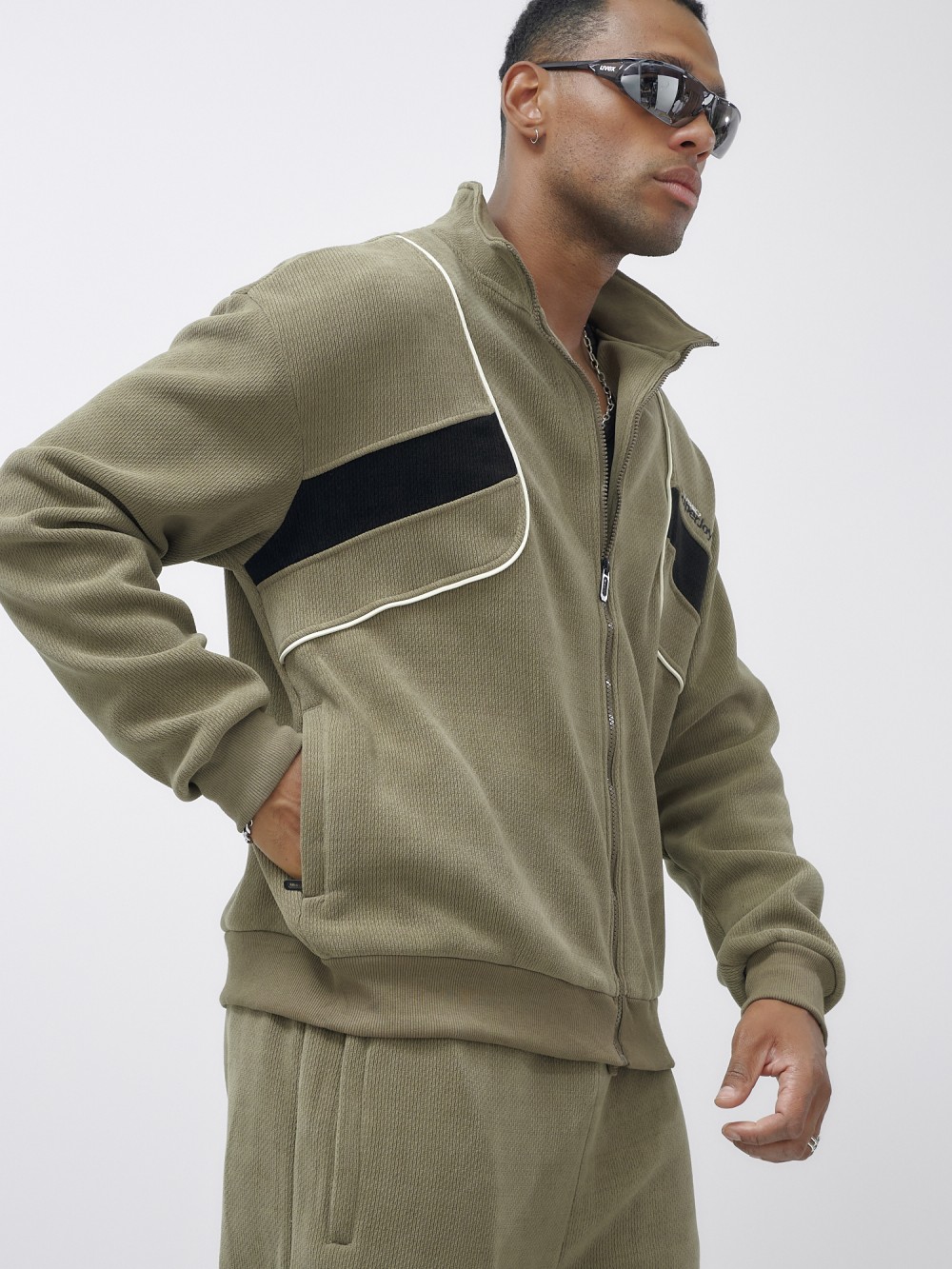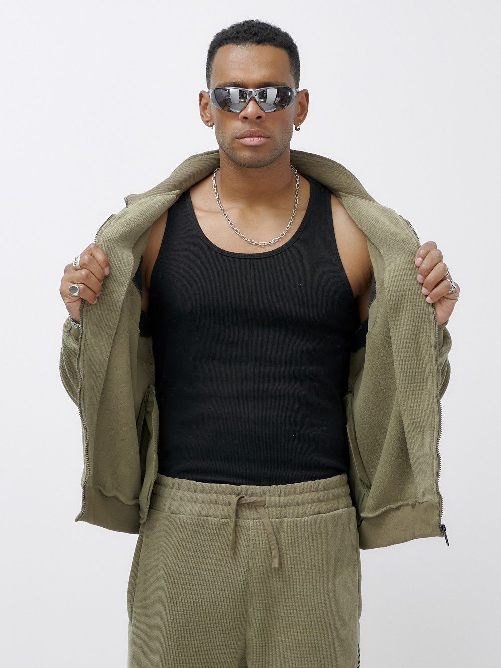 Олимпийка мужской демисезонный на флисе УЦЕНКА хаки цвета 0875Kh